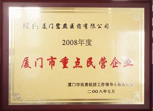 近日,經(jīng)市政府第35次常務(wù)會議研究確認(rèn), “2008年度廈門市重點民營企業(yè)”名單已正式公布,廈門鷺燕醫(yī)藥有限公司繼2006年之后再次獲此殊榮。 據(jù)相關(guān)負(fù)責(zé)人介紹,該評選活動每兩年舉行一次,主要針對在廈門注冊,在所從事行業(yè)處于領(lǐng)先地位,獲得相關(guān)行業(yè)部門、社會團體或同類型企業(yè)普遍認(rèn)可的民營企業(yè)。 本次共評選出60家重點民營企業(yè),鷺燕醫(yī)藥2007年度銷售收入近10億元,比上年增長36.9%。作為唯一的一家醫(yī)藥流通企業(yè)入選,彰顯了企業(yè)的行業(yè)地位。此次獲選肯定了公司的經(jīng)營業(yè)績,同時也激勵著公司發(fā)揮優(yōu)勢、克服困難,繼續(xù)保持企業(yè)健康、可持續(xù)發(fā)展能力,力爭在新的一年里再創(chuàng)佳績,實現(xiàn)集團股份制改造后經(jīng)營質(zhì)量有質(zhì)的飛躍,為全社會的健康事業(yè)做出新的更大的貢獻。