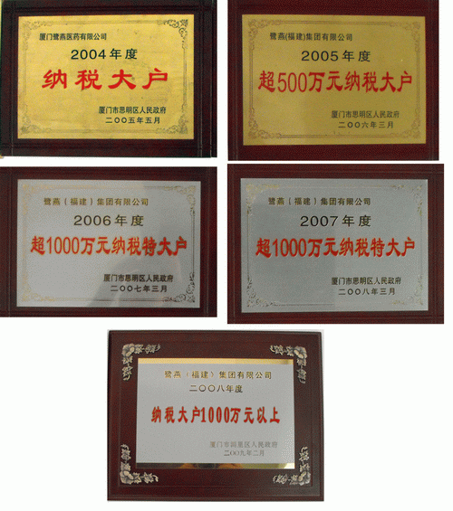 2009年3月3日,廈門(mén)市湖里區(qū)人民政府召開(kāi)“2008年度湖里區(qū)納稅先進(jìn)企業(yè)表彰會(huì)”,鷺燕集團(tuán)再次榮獲“納稅超千萬(wàn)大戶(hù)”榮譽(yù)稱(chēng)號(hào),這是鷺燕集團(tuán)自2006年以來(lái)連續(xù)三年成為“納稅超千萬(wàn)大戶(hù)”。