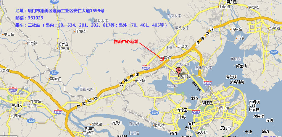 新址乘車:安仁大道—三社站(工業(yè)區(qū)路口)下車即可(島內:可乘坐53、534、201、202、617公交車;島外可乘坐70、401、405公交車),位置示意圖如下: