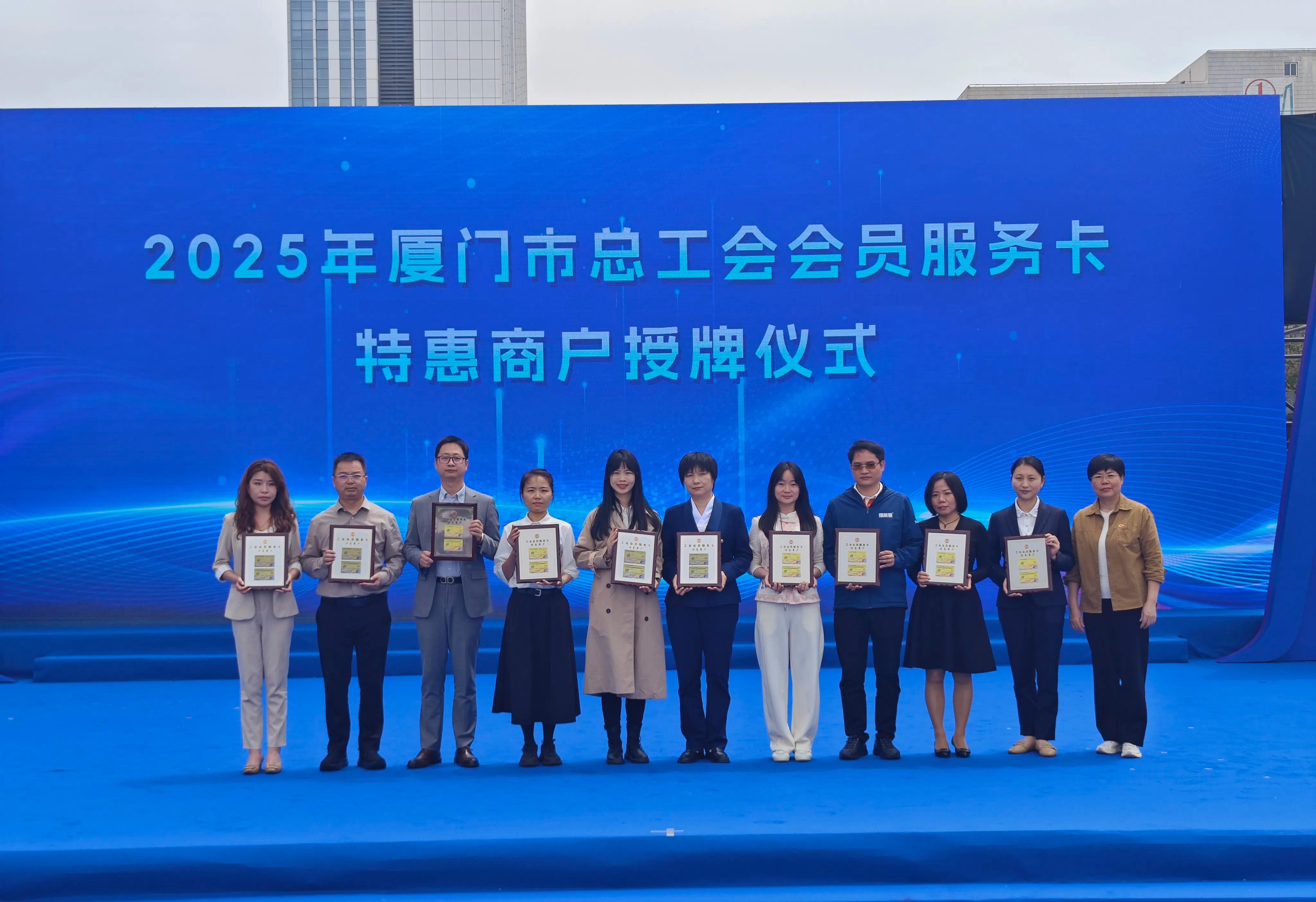 4月13日,由廈門市總工會指導(dǎo)、市機(jī)關(guān)事業(yè)工會聯(lián)合會主辦的“惠工聚益 共享美好”2025年工會集市活動在五一廣場盛大啟幕。廈門鷺燕大藥房作為2025年“工會會員服務(wù)卡特惠商戶”首批新簽約的10家優(yōu)質(zhì)企業(yè)正式獲得授牌,并攜多項(xiàng)健康惠民服務(wù)亮相。
