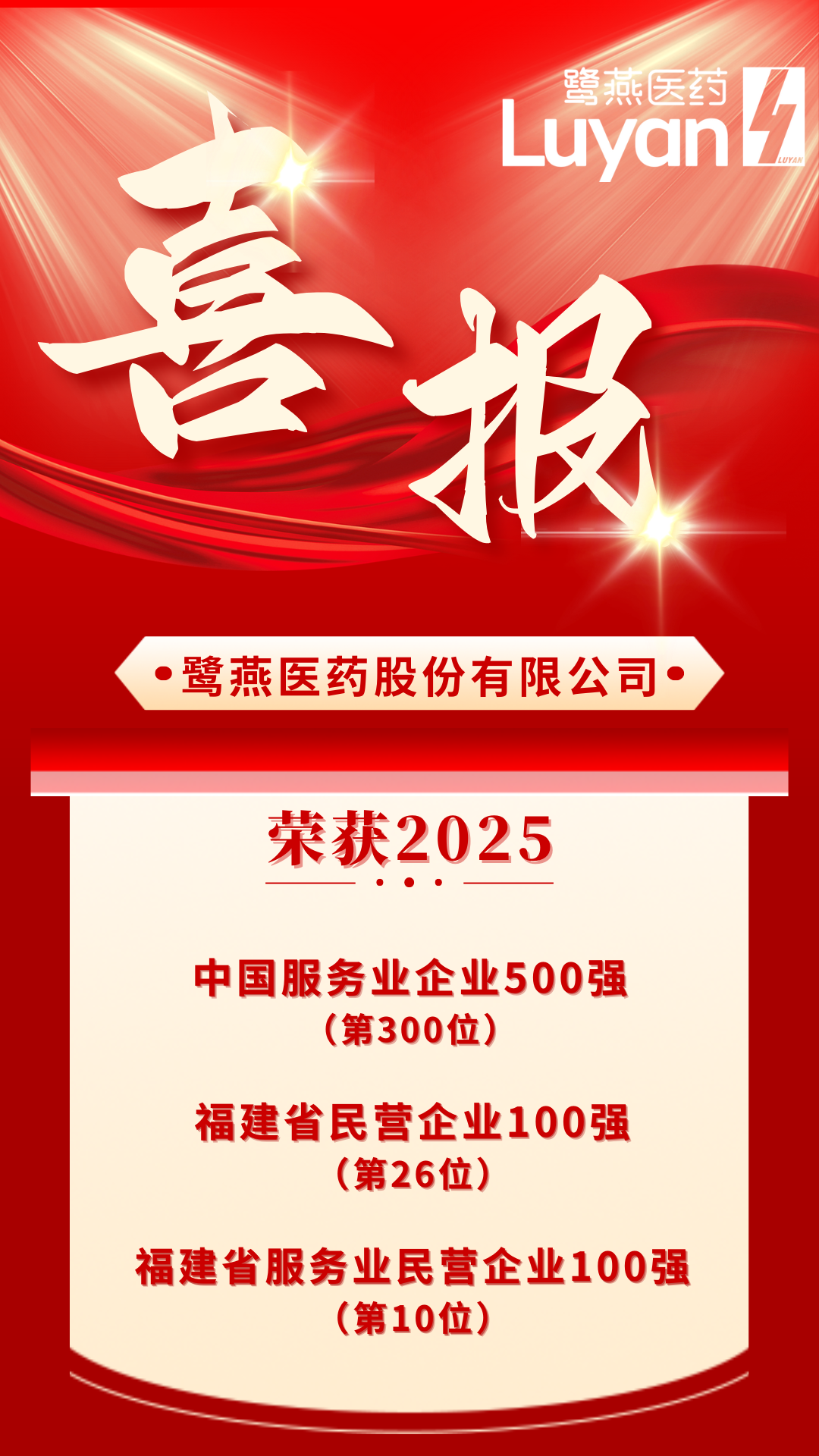 9月28日,福建省工商業(yè)聯(lián)合會在寧德發(fā)布“2025福建民營企業(yè)100強”,鷺燕醫(yī)藥連續(xù)5年上榜,列第26位。同時,在“2025福建省服務(wù)業(yè)民營企業(yè)100強”榜單上,鷺燕醫(yī)藥連續(xù)3年上榜,位居第10位。