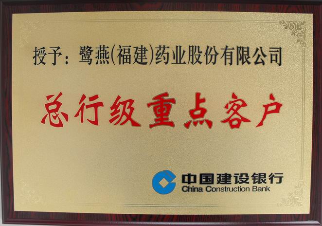 基于鷺燕企業(yè)優(yōu)異的業(yè)績表現(xiàn)、穩(wěn)健的經(jīng)營管理風(fēng)格和良好的資信情況,經(jīng)過中國建設(shè)銀行的嚴格審評,近日,鷺燕(福建)藥業(yè)股份有限公司被認定為中國建設(shè)銀行“總行級重點客戶”。