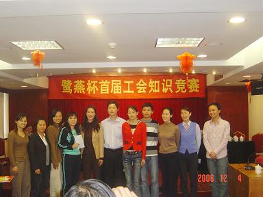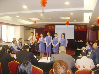 廈門鷺燕大藥房有限公司于2006年12月3日在廈門廬山大酒樓隆重舉行鷺燕杯首屆工會知識競賽,此次工會知識競賽由6個工會小組各自選派4名選手參加,比賽環(huán)節(jié)包括團隊介紹、啦啦隊互動、演講比賽、必答題、搶答題、猜詞秀、才藝表演等,形式多樣、內(nèi)容豐富。比賽現(xiàn)場還邀請了一些供應(yīng)商的代表作為嘉賓評委,為比賽進(jìn)行現(xiàn)場點評及頒獎。